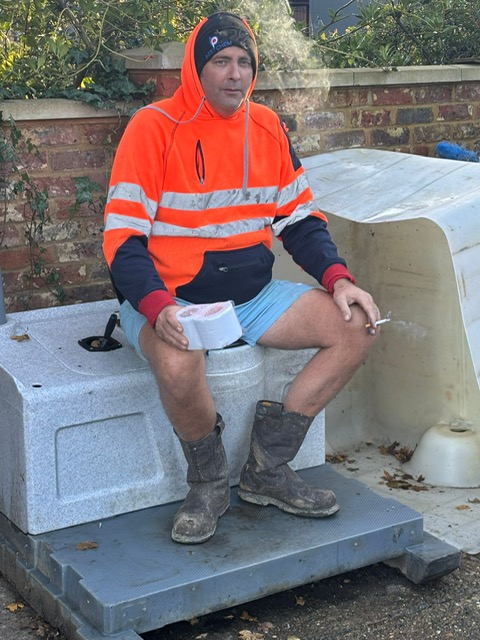 There was one… some years back when we were loading at a festival, a man came over and asked to use one of the loos. I told him that he needed to use one at the far end because we were already loading the ones nearer to us. He clearly didn’t pay much attention to me and managed to head into the loo we were loading next! So there he was, loaded up onto our trailer while he was still inside the loo! Needless to say he wasn’t very happy when he came out, and used a few expletives to express himself – but like somebody on site told him, s**t happens!!