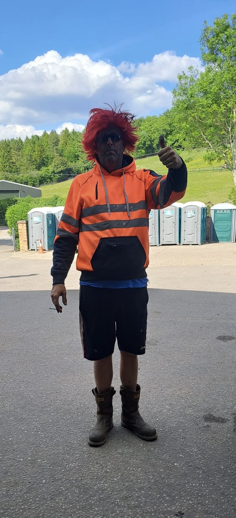 There was one… some years back when we were loading at a festival, a man came over and asked to use one of the loos. I told him that he needed to use one at the far end because we were already loading the ones nearer to us. He clearly didn’t pay much attention to me and managed to head into the loo we were loading next! So there he was, loaded up onto our trailer while he was still inside the loo! Needless to say he wasn’t very happy when he came out, and used a few expletives to express himself – but like somebody on site told him, s**t happens!!